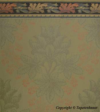 Ausdrucksstarkes Jugendstilmuster mit textiler Ausstrahlung durch feine Wollfasern in der Grundfarbe. Das Original stammt aus der Alten Börse in Riga/Lettland.
